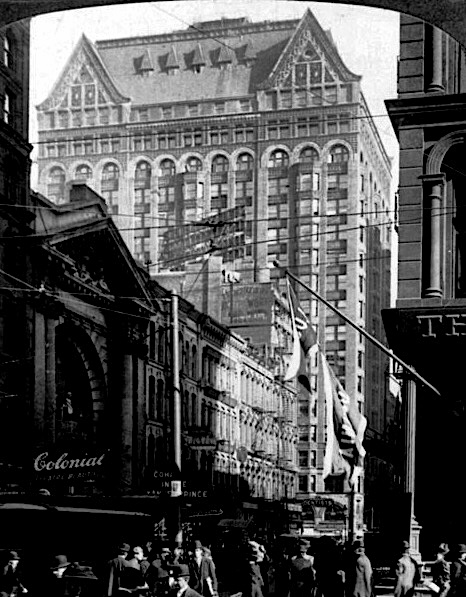 Burnham & Root, Masonic Temple, Chicago, NE corner of State and Randolph, 1890. Looking east along Randolph. (Online)