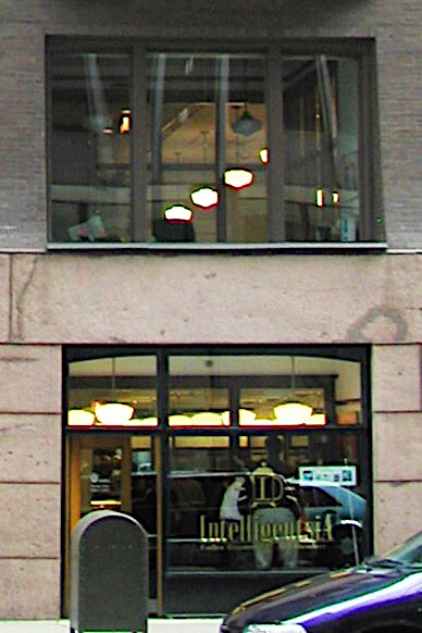 Burnham & Root, Masonic Temple. Base. Note how the base is not solid but stands on the piers. Also, look at how Root has carried the bay windows down into the granite base, creating an interlocked joint between the grantie base and the brick body above. (Online)
