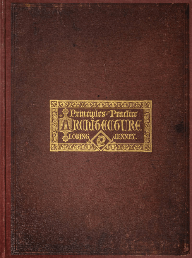 Jenney found much of his inspiration in Garbett’s 1849 Rudimentary Treatise on the Principles of Design in Architecture. While Garbett had fallen into professionally obscurity after its publication, having moved on to writing about theological matters, his architectural treatise was imported to the U.S. in 1853 when it was included with other British writings in a compendium of architecture knowledge published by John Bullock under the title The History of Rudiments of Architecture, that Bullock intended as a textbook for Americans interested in gaining a more thorough understanding of the art of architecture. While Jenney chose to name his first book, Principles and Practices of Architecture, most likely after Pugin’s 1841 book, The True Principles of Pointed or Christian Architecture, the order of its contents seem to have been inspired by Garbett’s taxonomy of his five classes of architectural forms, in which he employed a gradation from the most important, overarching general issue to the most specific detail, that Jenney also employed to order his efforts:
