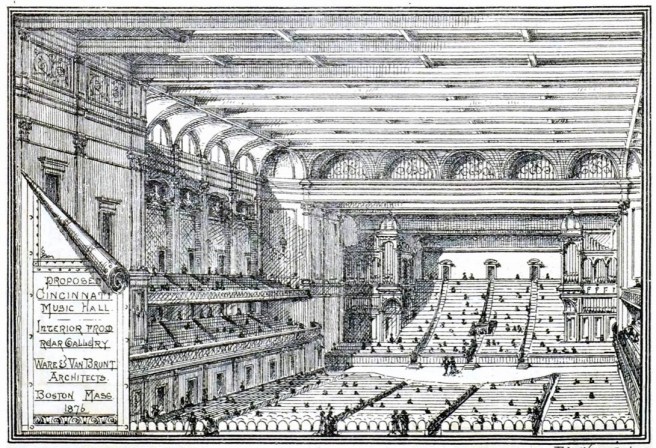 The Shillito’s store was not the only building in Cincinnati that drew the envy of its younger neighbor to the North, for only four months earlier in 1878, prior to the opening of the country’s largest department store, the city had just completed construction on its new Music Hall, the country’s largest music auditorium. All was completed and ready on Tuesday, May 14, 1878, when Maestro Thomas strolled onto the new stage and “struck up the band,” opening the May Festival and the new facility with scenes from Christoph Gluck’s “Alceste.” The new facilities were unparalleled in the country, leading the Cincinnati Commercial to justifiably predict that for the immediate future: