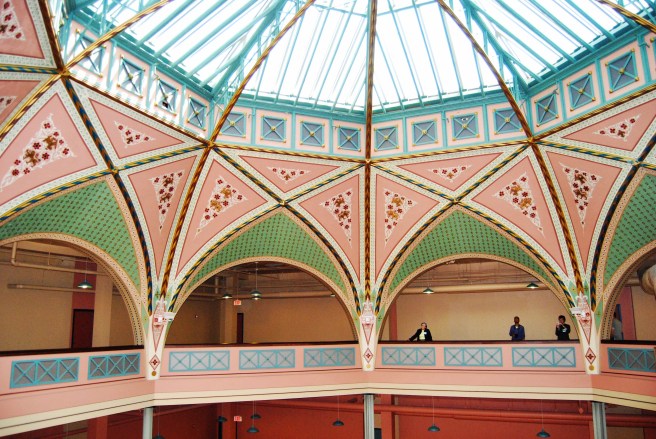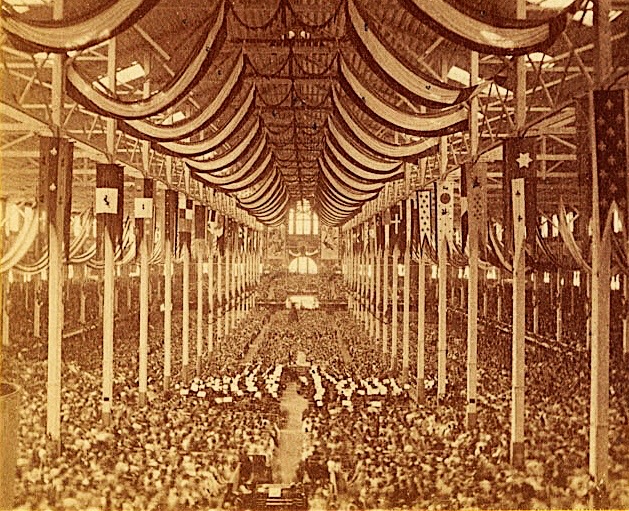 Meanwhile, construction had commenced on the two flanking exhibition pavilions, one for art and one for industry which were completed in time to renew Cincinnati’s premiere Industrial Exposition in the Fall of 1879. The facility lived up to its promise the following year when the 1880 Democratic National Convention met in it and nominated Winfield S. Hancock on June 24, to oppose Republican James A. Garfield, who had been nominated in Chicago’s rather dated Inter-state Industrial Exposition Building only two weeks earlier.
