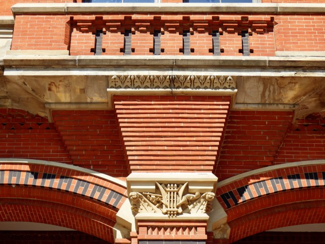 The exterior consisted of solid brick piers that supported iron lintels for each of the masonry spandrels. (In 1983, while I was researching a paper on the Home Insurance Building, I suspected that McLaughlin had placed vertical iron sections along the interior face of each pier to support the iron floor beams. I was fortunate to actually find McLaughlin’s original 100+ year-old drawings in the maintenance department in the building’s basement (no less!!) that showed no iron, only a masonry pilaster formed along the centerline of the interior face of each pier upon which sat the iron beam.)