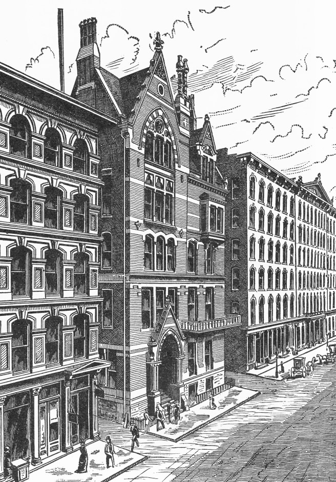 Therefore, while the wood-encased column led the way in principle, it was never actually used in a building. Wight’s first terra cotta-encased columns were incorporated late in 1875 in the six-story Chicago Club Building at 12 E. Monroe Street, across the street from the Palmer House, designed by Treat & Foltz as Chicago’s genteel retreat for the likes of Potter Palmer and Marshall Field. While the depression of 1873-9 would slow the adoption of Wight’s invention, it would also give him the time to fully develop it so that it would be ready to use when construction picked up in Chicago during the latter half of 1879.