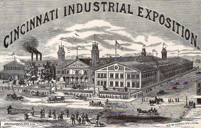 Three more buildings (a Power Hall, a Fine Arts and Music Hall, and a Mechanics Hall) were completed during the summer in time for the October 5, 1870, opening of the “Grand Exposition,” giving Cincinnati the largest (838,000 sq. ft.) and finest exhibition and convention facility in the country.