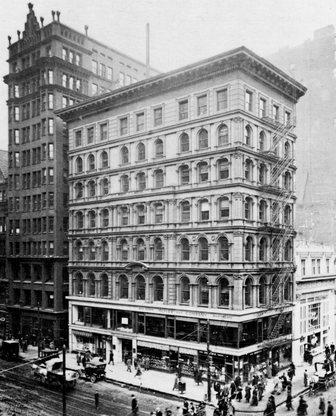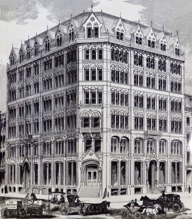 At a reception one night in mid-1880, Aldis had made the acquaintance of a relatively unknown architect, John Root (Root -30, Aldis- 27). The pair had hit it off immediately and had made their way to a small room where they could converse undisturbed. The two bid their farewells around 1 in the morning, Root having had no idea who his new friend was. From such a chance encounter would grow some of the world’s most famous buildings, for Aldis came away from the conversation that evening “knowing he [Root] was a genius, and the next day I brought [to Root’s surprise I’m sure] him a building.” (And it was just not another “building,” but a seven-story commercial office building!) Aldis’ commission to design Amos Grannis’ new building (and I think the addition to the Portland Block as they were done at the same time) gave the young firm its first opportunity to design a multistory office building, and would launch Burnham & Root on a trajectory that would see them not only become the largest architectural firm in the U.S., but also play a seminal role in the development of a building type that would soon be called “the skyscraper.”