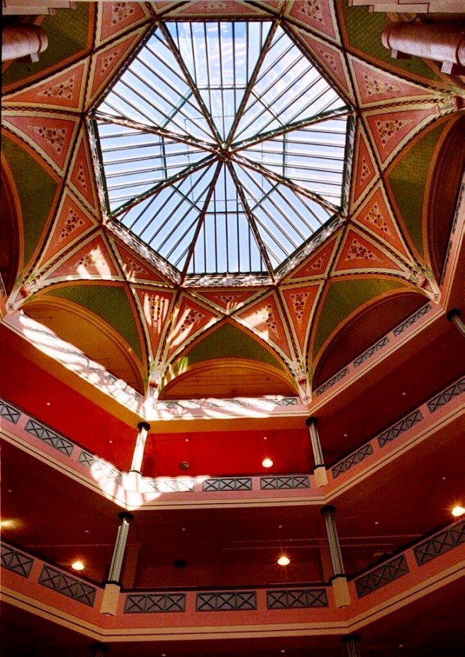 As technology improved by the end of the Civil War, the floors of these galleries typically would be made with glass lenses placed in the floor, so that the light could penetrate to the story below each gallery.