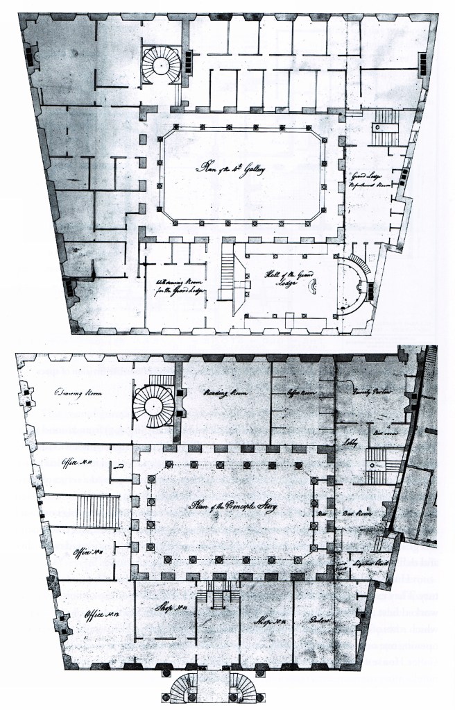 A fallacy perpetuated by many historians has been the idea that a lightcourt was “optional.” In other words, some authors would claim that the architect “chose” to incorporate a lightcourt. The nineteenth century architect had no such choice. As soon as the minimum dimension of a site reached around 60,’ a lightcourt that ran from the ground floor to the roof had to be part of the solution. This did not depend upon whether the building was an office building: