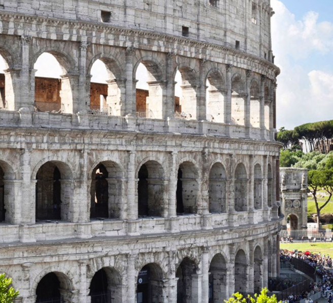 3. Rome: although Rome had built apartment buildings that were 5-6 stories high, the exterior of monumental buildings such as the Colosseum and the Pantheon were treated in a similar manner. Their exterior elevations comprised of horizontal layers of one-story tall engaged pilasters carved into the marble veneers that were applied one on top of another to their masonry structures.