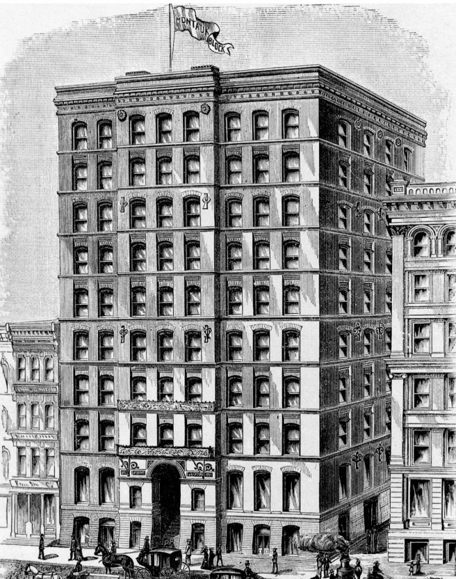 Burnham & Root, Montauk Block, Chicago, 1881. I chose the Montauk Block also to show the asymmetrical location of the entry caused by a small-sized lot. (Andreas, History of Chicago)