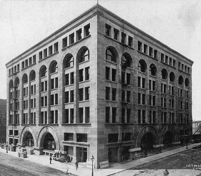Adler and Sullivan, Walker Warehouse, Chicago, southwest corner of Adams and Market, 1887. (Cannon, Louis Sullivan)