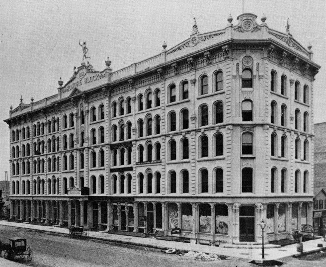 Otis Wheelock, Honoré Block, Chicago, 1873. Northwest corner of Dearborn and Madison. (Gilbert, Chicago)