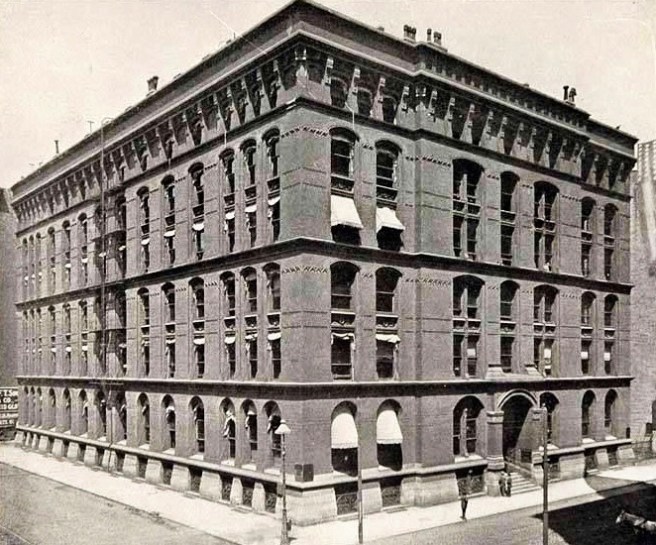 And once I again, I look for the reported Gothic Revival in this building and find none. Quite frankly, I believe I have shown the thesis that Root’s early buildings were Gothic Revival to be an erroneous, rather simplistic construction. It is also a stretch to label the building “Romanesque Revival” for only the first floor has semicircular windows. (So one might honestly say that it is 16% Romanesque.) What we have here in the Burlington Building is Root beginning to gain his confidence with the design of a large building. If we need to give its style an historical label, probably “Renaissance Revival” would be the most accurate, in at least its overall massing and bracketed cornice that speak to Florence in the 15th century. But the segmental arches and monochromatic palette still speak of the Néo-Grec. However, Root has not carved the openings into the plane of bricks as he had done in the Grannis Block. Instead, he has softened the edges of the openings, beginning to express the plasticity of the building’s mass. No, this is not Gothic Revival nor Néo-Grec nor Renaissance Revival; this is the synthesis of details with design and materials that we could call Root.