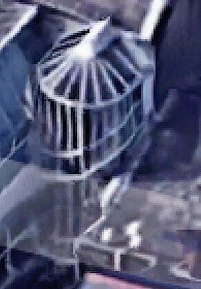 Elevator historian Lee Gray’s research has impressed upon me the importance of providing light in pre-electricity elevators, especially daylight. Although coal gas could be provided with a flexible tube, this was rarely chosen as the solution. The alternative was simply daylight, usually provided from a skylight at the roof in conjunction with light borrowed through glass placed in corridor doors and walls. This method required that the elevator cab consist of a metal gridwork that minimized the obstruction of this light. A more effective solution that was developed in Chicago was to build an exterior “window wall” at the back of the elevators. This provided immediate daylight to the cabs at each floor. Coupling this with the need of a rigid iron structure within which the elevator cab could ascend and descend with minimum vibration, all the pieces were in place for the birth of the exterior iron frame. This may also have been the case in New York, but among Chicago buildings this solution first emerged in 1884 and continued as a favorite, at least with Root through the 20-story Masonic Temple (imagine that elevator ride!).