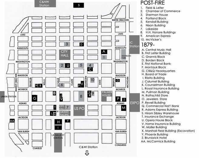 This was a prime location as it was directly east of the Board of Trade, faced the Grand Pacific Hotel, and was diagonally across from the Post Office. In a sense, it was the link or pivot between Chicago’s two prime areas of development at this time: the Post Office Square and the Board of Trade district.