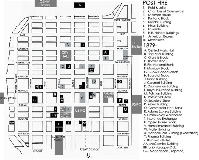 Because of the severity of the winter, the ice-encrusted ruin of a supposedly fireproof building stood for weeks as a sober reminder that even though over thirteen years had passed since the great conflagration of October 8, 1871, Chicago had not yet learned not to build with wood: