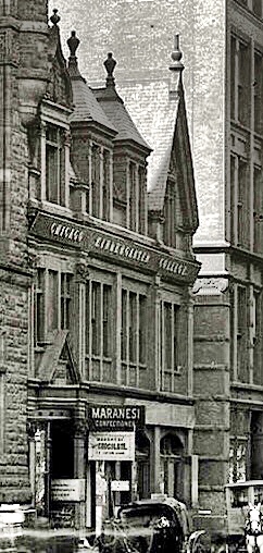 The organization moved into the existing building at the corner and hired Burnham & Root to design a small three-story “addition” to the west along Van Buren for studios and small gallery. In August 1885, as construction on the Cincinnati Museum was winding down, Hutchinson bought the vacant lot immediately to the south of the existing corner building and commissioned Burnham & Root to design a four-story plus basement building to replace the original building on the corner, for a program that included a number of galleries, in addition to artist’s studios and clubrooms in the upper two levels.