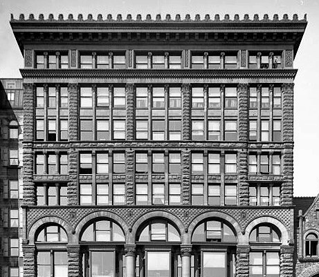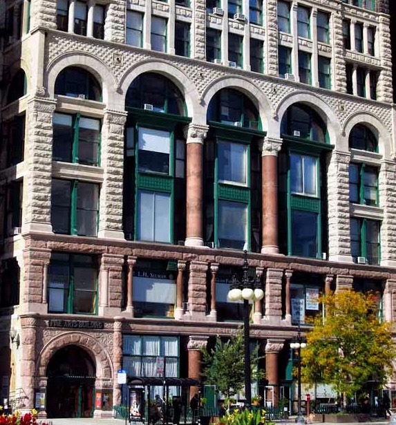 S. S. Beman, Studebaker Building. Two-story columns in Floors 3 and 4. (Chicago Architecture Center)