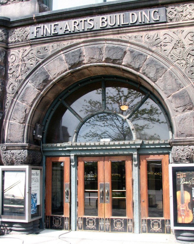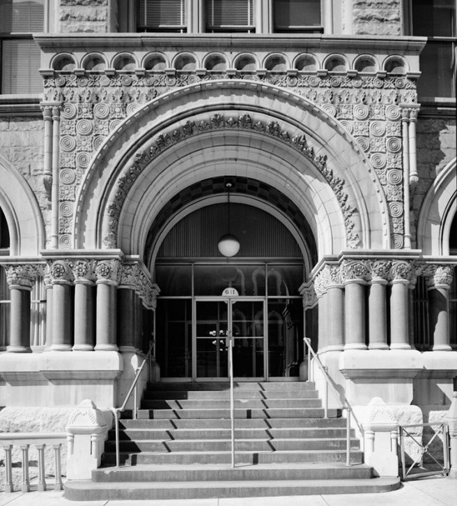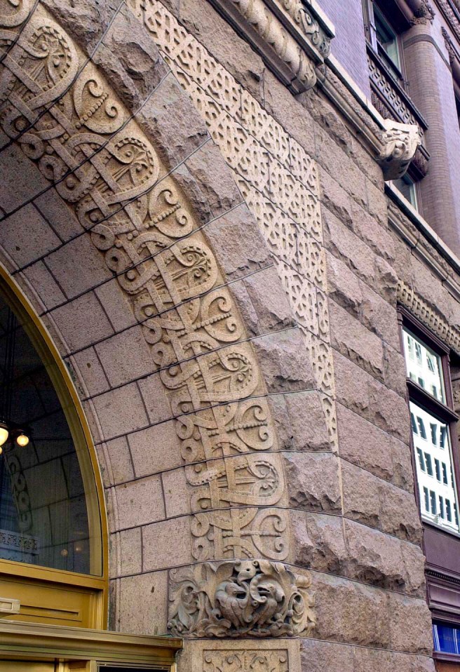 Beman, Studebaker Building. Entrance and its “Celtic” bands of ornament. (Author’s collection)