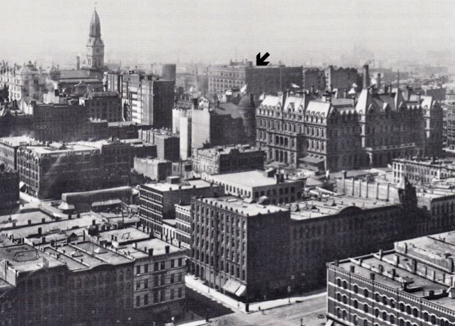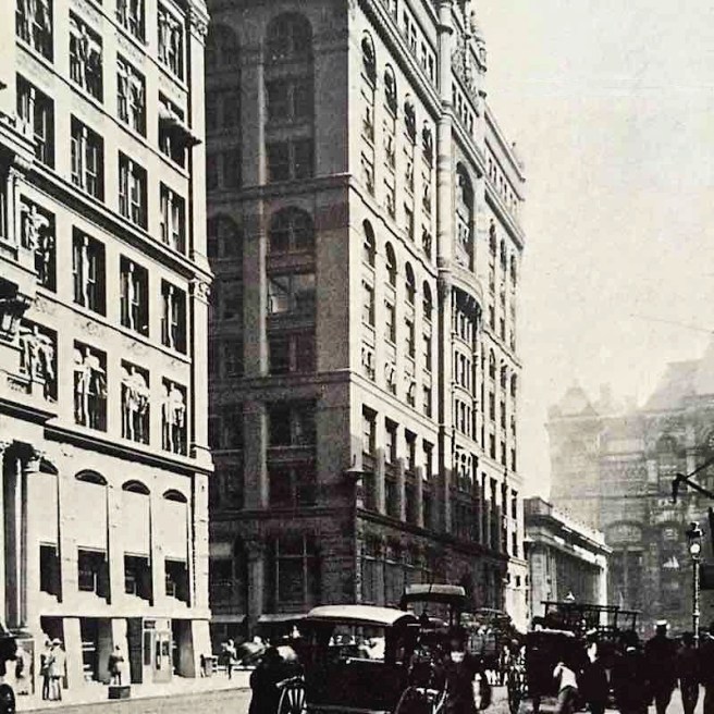 At the beginning of this Chapter I started with Root inventing the iron-reinforced concrete foundation. This was only one of a number of construction innovations involved with this building, and I believe we can credit this to the mutually-reinforcing relationship between the two former New Yorkers, Root and George Fuller (Root was less than a year older). Root’s family had moved to New York following the end of the Civil War, where he had returned following his graduation from “high school” in Liverpool. He had enrolled in and graduated from what would become NYU in Engineering, the same technical training that George Post had experienced twelve years earlier. Root was attending classes while Post was completing the innovative Equitable Building, that you know I claim to be the first skyscraper. Knowing architecture students like the back of my hand, Root would have been studying every detail in that building. Root had left for Chicago in early 1872, four years before George Fuller was named the head of the New York office of Peabody & Stearns. His last project before he left Peabody & Stearns to set up his own firm in Chicago was the United Bank Building.