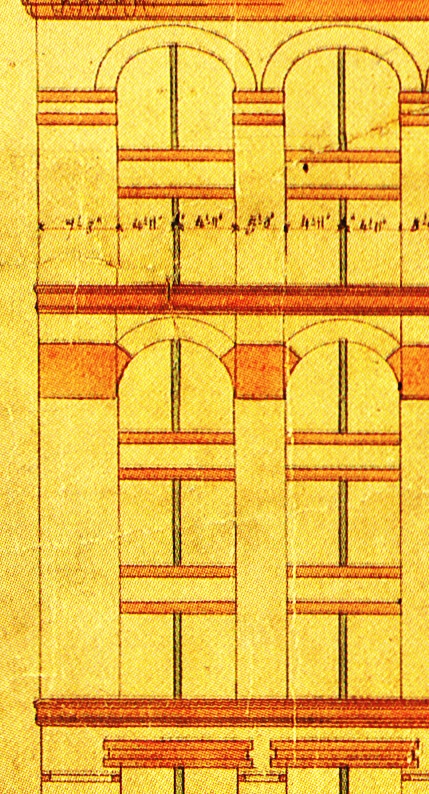 The difference being, however, subtle, was that the upper sill courses were detailed within the plane of the wall, instead of being projecting beyond as was still the case in the Courthouse, thereby being absorbed into the wall surface, allowing the building to be read more as a unified mass that has been wrapped with a continuous surface, similar in its effect to what I noted in the upper stories of the courtyard elevations of the Courthouse.