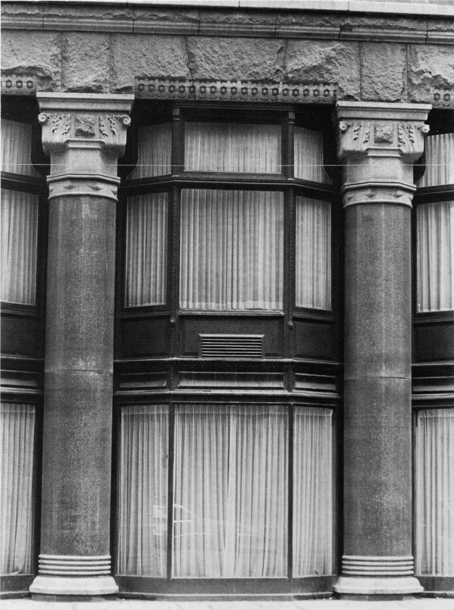 Burnham & Root, The Rookery. Detail of how the granite columns frame the oriel windows. (Zukowski, Chicago: Growth of a Metropolis)