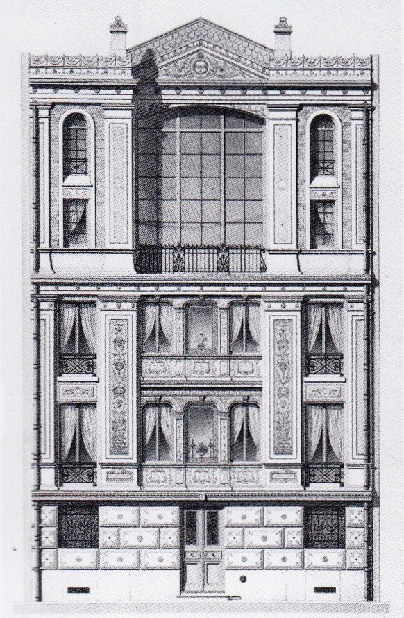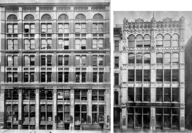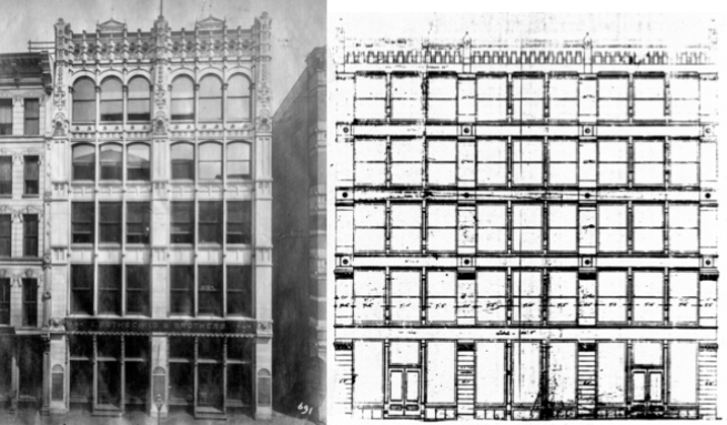 I think Sullivan’s precedents were not so exotic, but simply found among American buildings. I have already shown the American lineage of this idea in Sec. 5.3. that I traced back to Detlef Lienau’s Noel & Saurel Building in New York of 1864. Hunt then incorporated this idea in his 1874 design for a cast iron front at 478 Broadway.