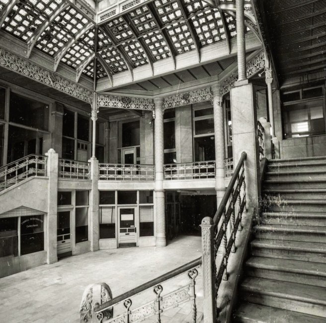 Buffington, West Hotel. Demolition photo of the lobby showing the iron framing. (Christison, “Buffington,” Art Bulletin, March 1944)