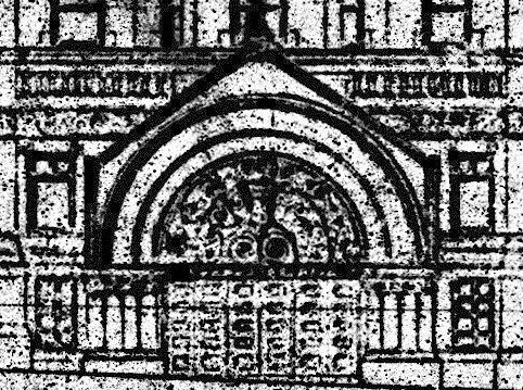 LeRoy Buffington, Union Depot, St. Paul, 1880. Note that Buffington curiously incorporates four windows under the large arches, whose mullions tend to visual break the arch into two halves, even though there are only three windows immediately below them. In contrast, Richardson always used three windows, which respected the integrity of the arch to span. (Millet, Lost Twin Cities)
