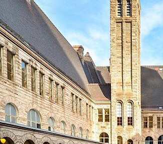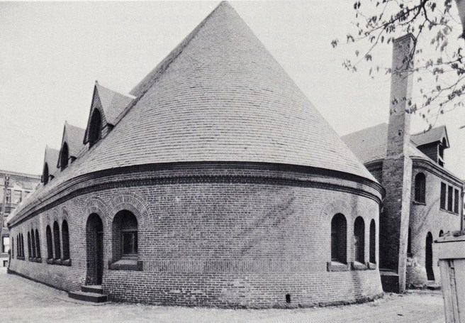 Richardson was thus able to create a courtyard in the interior of the site completely isolated/protected from the streets that was assured of daylight all-year long, in which the children could play without parental fears of kidnapping. Richardson reinforced this “homelike” interior setting by facing the house’s courtyard walls with residential-scaled brick rather than the exterior’s castle stone walls.
