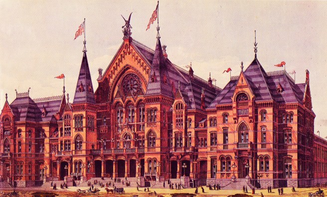 While most historians quote the Metropolitan Opera House as its model and target, Peck had cited “political conventions” as one of the project’s main functions: “to have the Republicans and Democrats meet in Chicago every time [as had actually happened in the previous year] they nominate a candidate for President and Vice-President.” The Metropolitan Opera House was never designed to, nor would ever house a political convention. The only facility in the country at the time that fit Peck’s description was Cincinnati’s Music Hall. As Cincinnati had resorted to art, culture, and conventions to maintain its economy after Chicago had superseded its industrial primacy following the end of the Civil War, Chicago would attempt the same trick to offset the loss of business confidence that had resulted from the Haymarket Square bombing. It had taken Chicago eight long years to respond to its southern competitor’s last challenge to Chicago’s dominance in the Midwest, but the time had finally come to put the final nail in the Queen City’s coffin. But once again, Chicago still had to look to the Queen City for its precedent.