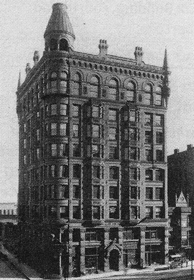 While Chicago continued to struggle to restart its real estate market during 1887 and the first half of 1888, Minneapolis and St. Paul were erecting skyscrapers that were beginning to overtake what Chicago had built prior to its economic slowdown. Even as early as April 1886, it was reported that the twelve-story Palisades Hotel (never built, however) was being planned for downtown Minneapolis (Chicago had only completed the 12-story Maller Building a year earlier, and the 11-story Rookery was just coming out of the ground). In March 1888, announcements were made in both cities that a twelve-story office building was being planned for each city. The race between the Twin Cities was on again. St. Paul appears to have been the first out the gate with the announcement that the Pioneer Press had commissioned Chicago’s S.S. Beman to design a building taller than what its competitor, the St. Paul Globe, designed the previous year by E. Townsend Mix had just completed. Within weeks of this announcement, Minneapolis real estate mogul Louis F. Menage released the news that he had hired Mix to design a twelve-story building for his company, the Northwestern Guaranty Loan Company, for the western corner of S. 3rd Street and Second Avenue S.