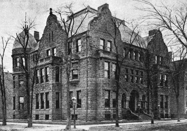 During the summer of 1887 while the contractor lockout dragged on, Adler & Sullivan had four other buildings on their boards whose design revealed how quickly Sullivan was maturing as a designer of building exteriors. Prior to being asked by Peck in mid-1886 to design the Auditorium, Adler & Sullivan had been commissioned by the Standard Club, the premiere private club for Jewish men, among which included current and former clients such as Charles Schwab, Morris Selz, and Levi Rosenfeld, to design a new building on the southwest corner of Michigan and 24th. This project was one of the casualties of the Haymarket Square bombing, however, as it was first shelved after the bombing, only to be further delayed by the bricklayers’ strike and lockout in the summer of 1887. This period of incubation paralleled Sullivan’s maturation as a designer during the constant redesign of the Auditorium’s exterior under Ware’s tutelage. The final design of the Standard Club, a rectangular box with a flat roof, exhibits Sullivan’s change from Furness’ picturesque massing to the geometric simplicity of Richardson’s Field Wholesale Store. (I have labelled this Sullivan’s first “box” because the Borden Block of 1880 was the product of Adler.)