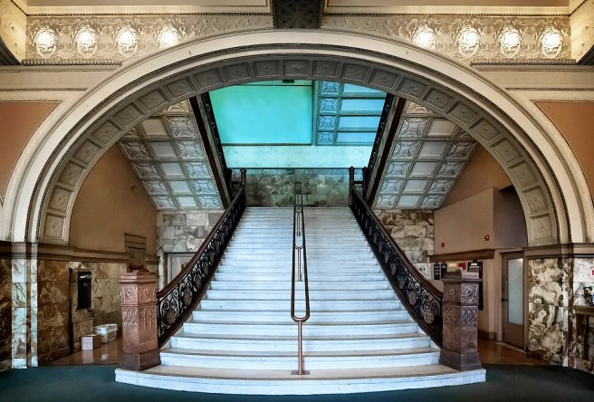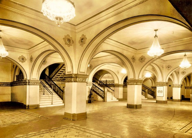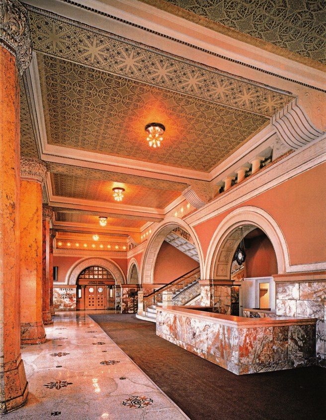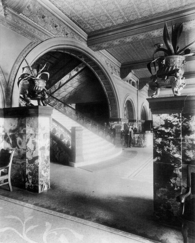 Third, within a year of the Hotel’s opening, American tastes in hotels had changed to expecting a private bathroom in their room. The communal or hallway bathroom that Adler and Sullivan had based the design of the Auditorium’s Hotel plan (it was planned on the European plan of one shared bathroom for every ten rooms) fell out of favor, the result of which was to force the hotel management to lower its rates to attract a lower class of guests to whom this did not matter as much. As such, the Auditorium’s Hotel never truly achieved the long-term prestige that Peck had envisioned for it.