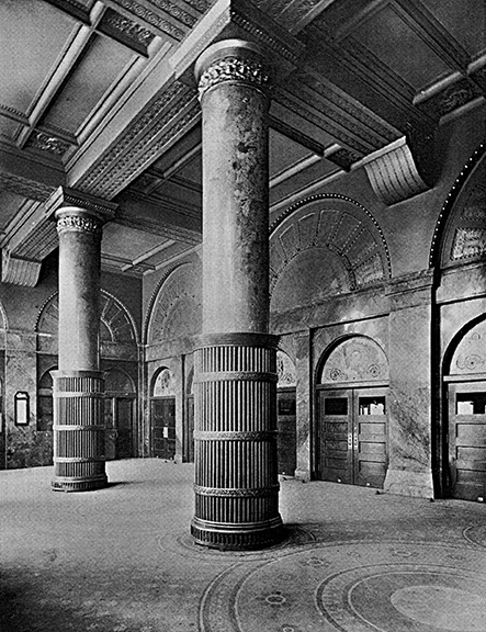 Second, if the Auditorium had been built two years later, Adler would have used iron-reinforced pad foundations, rather than the antiquated, stepped stone pyramidal foundations that he had used. While this would not have had any impact on the building’s exterior image, the much-reduced weight of the iron-reinforced pads, as well as the shallower depth required (with a corresponding increase in bearing strength) would have also diminished the amount of settlement the building experienced over time.